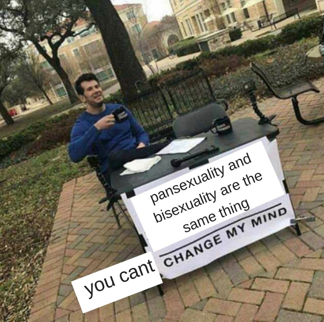 ACTUALLY!!!!! As someone is who pansexual…i dont give a fuck what is in your pants or what you identify as…i am sex and gender blind when it comes to attraction…and yes i will,respect what you are and identify as…and bisexuality from my understanding..if you,look at the flag..is being attracted to more than two genders..including nonbinary and such…transpeople being what ever they identify as..man or women etc..