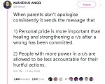 This is one thing emotionally abusive parents are known for. Holding power over accountability and they wonder why their children don’t want to be around when they get older.