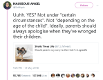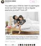 Not only does this model HOW to make an effective apology, but it establishes trust on many levels. The children who witness the exchange now know that: